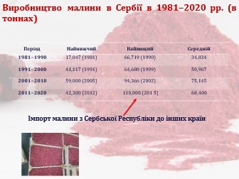 Сербія традиційно входить до числа ключових світових виробників і експортерів малини, передусім у сегменті замороженої продукції.